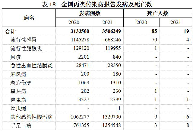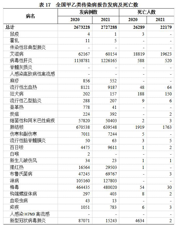 关于《2021 年我国卫生健康事业发展统计公报》传染病章节的分析