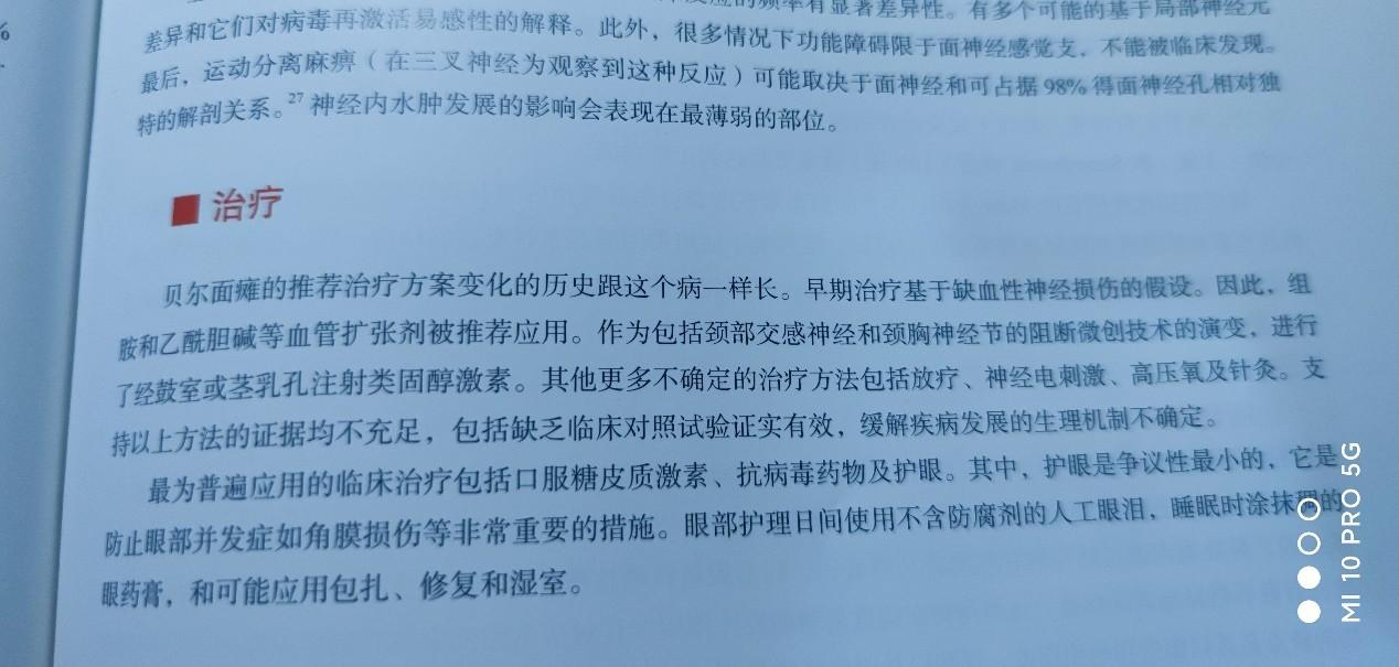 当时在亲戚朋友的建议下,我选择的治疗方法,除了传统的西医吃药,打针,还选择了中医的针灸,电刺激,放血拔火罐等(等过些日子再回顾这段治疗经历的时候,我发现除了一开始天津市总医院开出的打针吃药有效以外,其他的中医治疗均有些问题,针灸能不能治疗贝尔麻痹,现在有很大争议,并且以相关证据证明拔罐和放血一定是没用的,最重要的是当时选择了电刺激,在后来我读了相关教科书,发现电刺激其实是非常非常不推荐的一种治疗方法,因为有很大可能产生面肌联动,不过当时也已经于事无补了,后来也是因为这件事儿,也导致了我从此对中医产生了很大的怀疑)