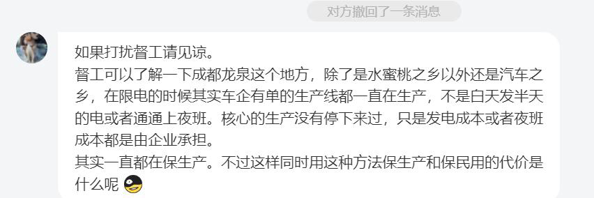 @ZZHuan10011:在上汽的离合器厂上班。上海疫情期间第一批紧急复工的 666家企业中的一家,我们不复工上汽,广西的五菱,北汽,奇瑞好几家汽车总装厂都要停产了。最急的时候别的总装厂五一放了 10 天假。等我们五一加班生产的东西。