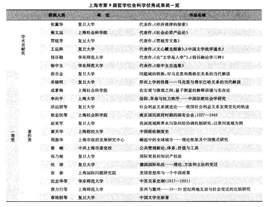 [10] 王志娟. 上海市第 9 届哲学社会科学优秀成果奖一览[J]. 上海文化年鉴, 2009(1):2.